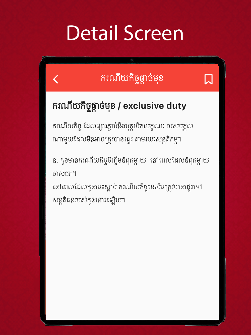 This app provides legal terms word technical in Khmer and English.