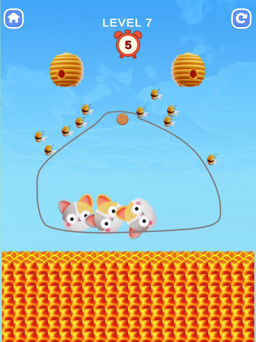You draw one line with your fingers to create walls that protect the cat from attacks by bees in the hive.