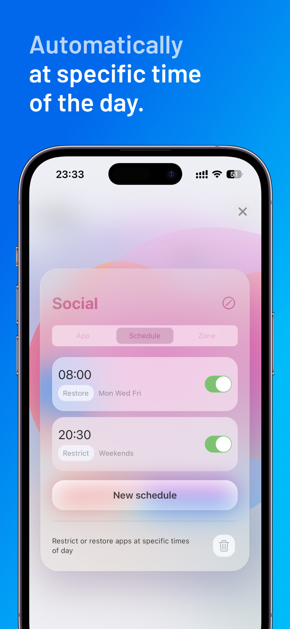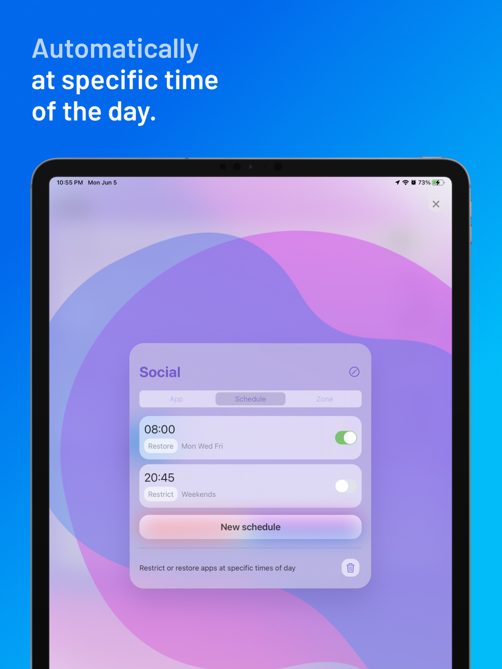 Above abilities helps you to stay concentrated and resist the temptation to certain apps during work or school hours.