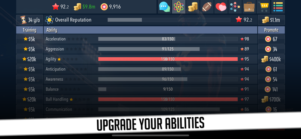 As you gain experience, you can upgrade abilities that suit your playing style and position. Perhaps you become a superstar quarterback, lightning fast wide receiver or even a defensive powerhouse?