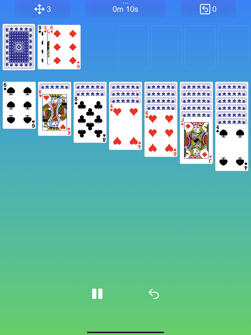 Play the traditional Solitaire in a clean and user-friendly interface. Move cards to create stacks in descending order by alternating colors. Can you conquer the game by arranging all the cards in their foundation piles?