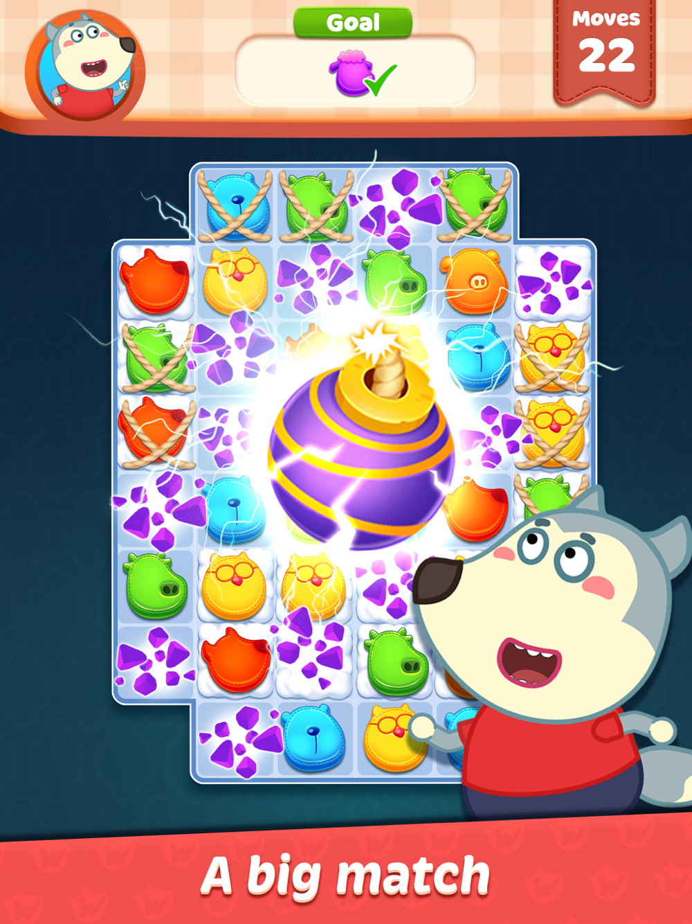 Classic Match-3 gameplay meets strategic puzzles in creative new level designs. Try to make the big combo matches while taking on unique missions like saving Wolfoo from dangerous, fire fighting to save the house and more. Let's match 3 balls to blast and clear the board, complete the missions and win coins. It's like the bắn trứng khủng long game, dynamite, egg shoot, cute bubble shooting game.