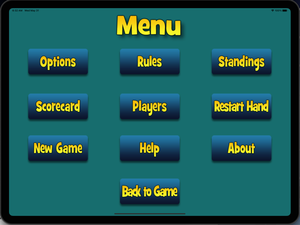 This Mexican Train Dominoes game will run on any iPad, iPhone, or iPod touch. One human player plays against 3 computer opponents of varying skill levels. The "best" train can be calculated by the game so you can improve your play. Many rule variations and options are available. Change the names of computer players. Change the speed of the game. Show numbers on the dominoes instead of pips. Just touch the "Menu" button and then "Help" to learn about all the options. Very addicting!