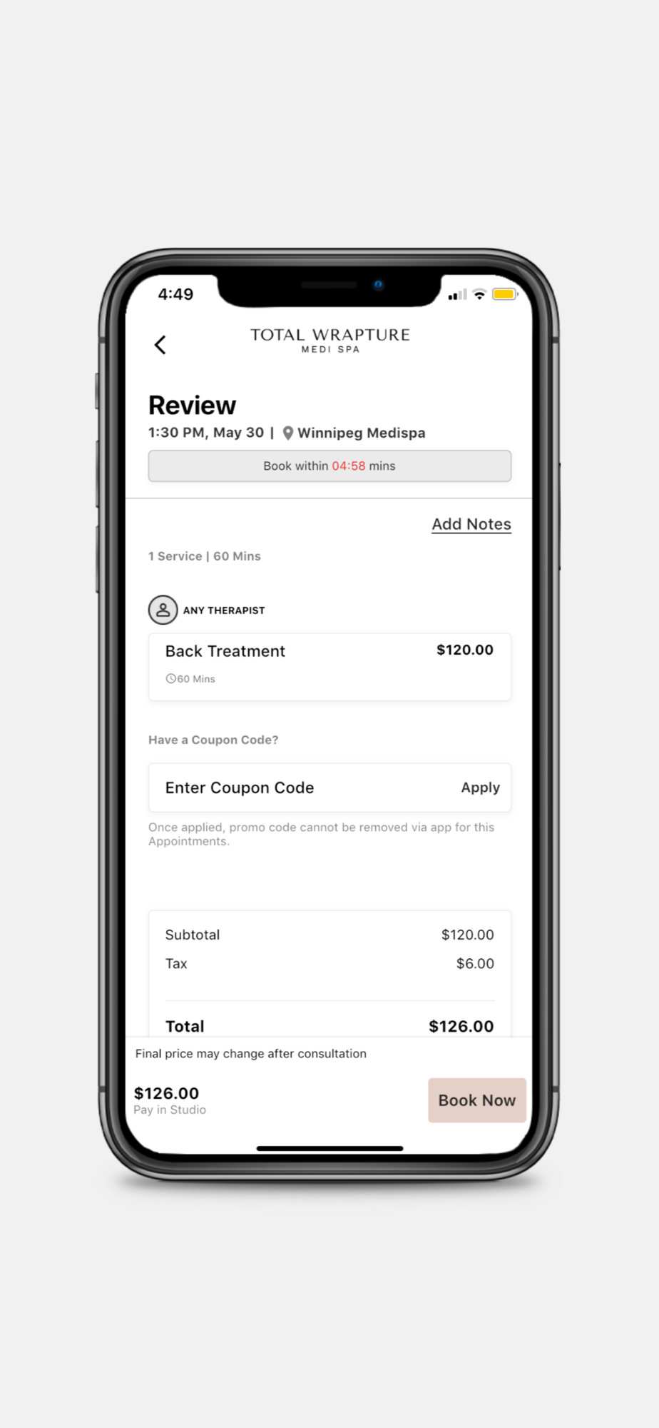 Manage your bookings and access your account and loyalty information! We know just how busy you are and we are making your Total Wrapture Medi Spa experience more efficient than ever. Here are some features you will enjoy: