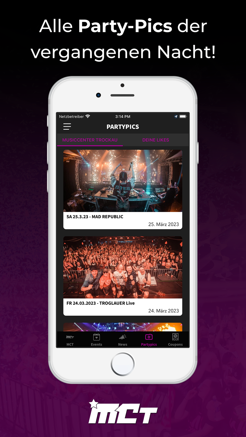 Du erfährst als erster, wann die nächste Party steigt und profitierst dabei noch von fetten Aktionen. Zum Event sparst du mit unseren Gutscheinen bares Geld. Damit du dich am Tag danach auch an den geilen Abend erinnern kannst, stellen wir alle Party-Pics in der App bereit.