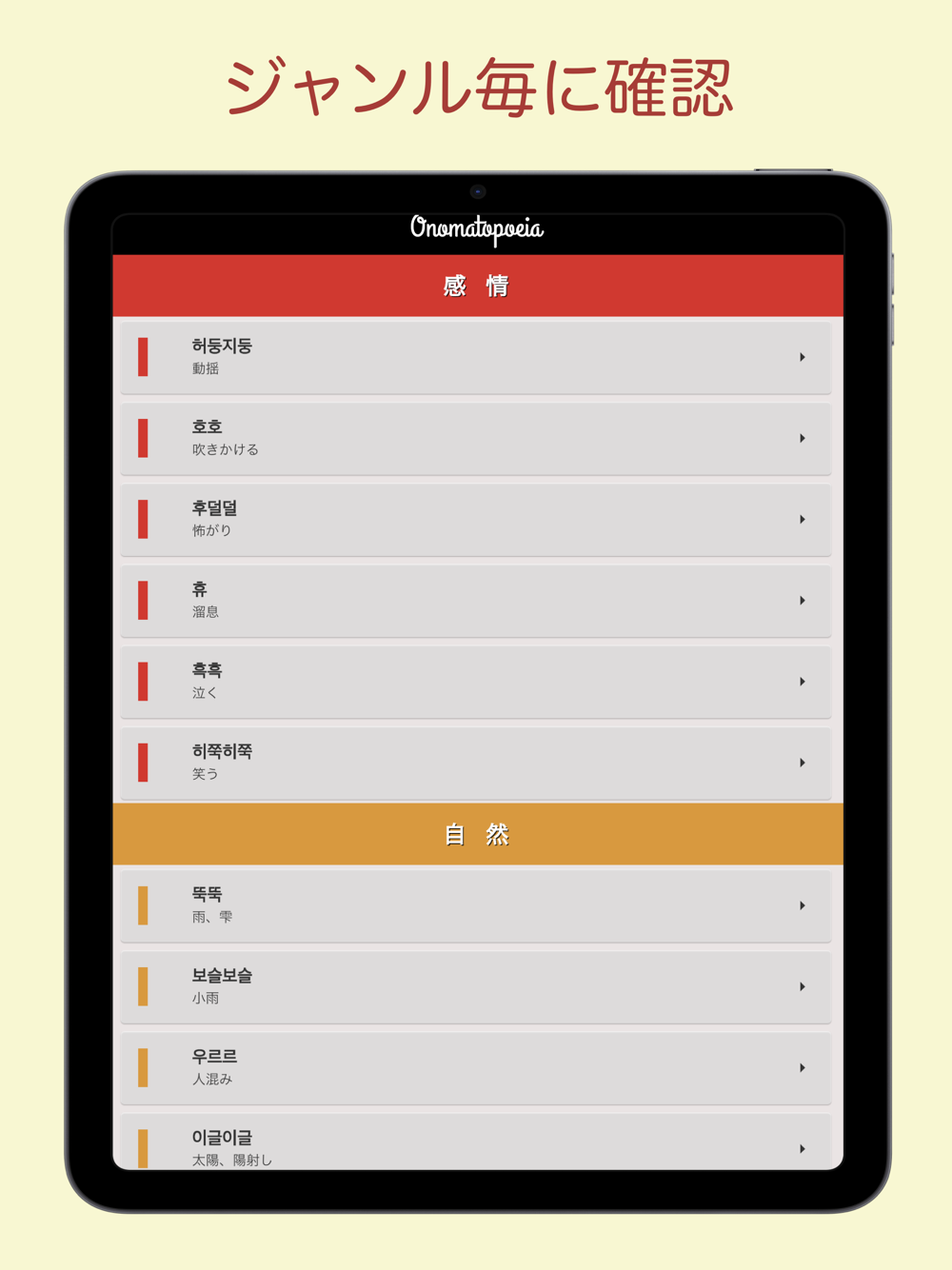 本アプリは、韓国語オノマトペの辞典アプリです。