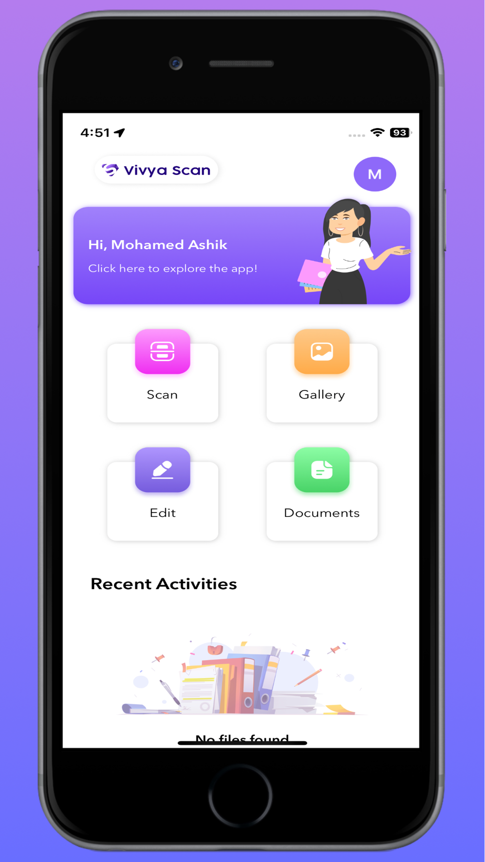 Vivya Scans, an intuitive application that simplifies the document management process by streamlining the process of scanning, editing, and sharing into a breeze. With Vivya Scans, you can easily scan your documents, ID cards, passports, and QR codes in a fraction of a second and save them in your preferred format with high-quality OCR technology.