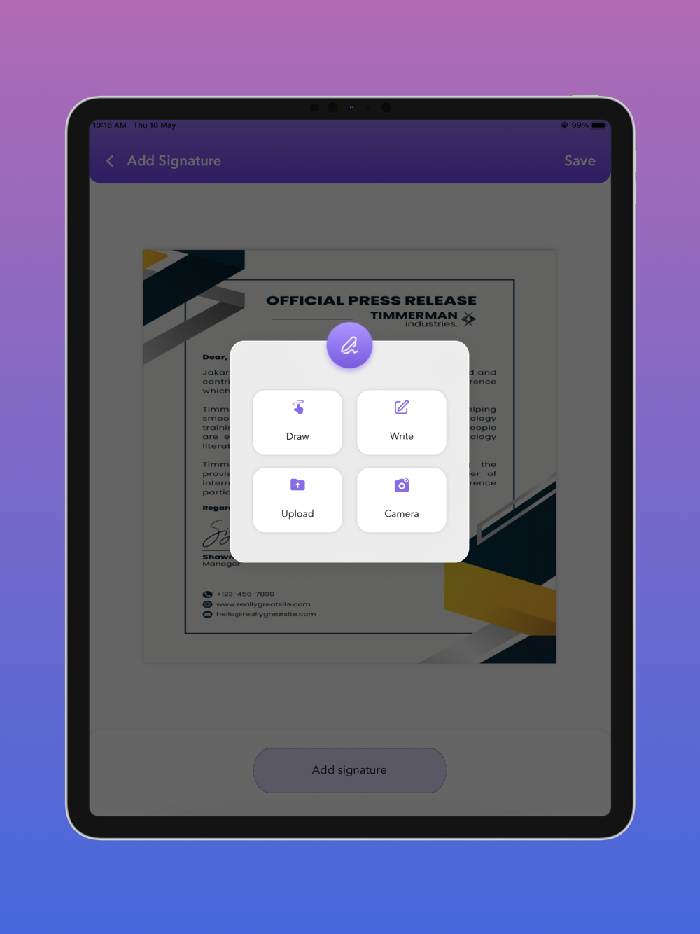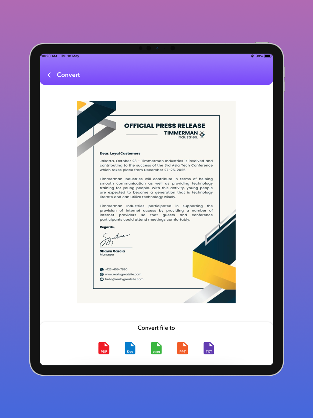 Easy sharing: Share your documents with anyone via email, cloud storage, or social media platforms.