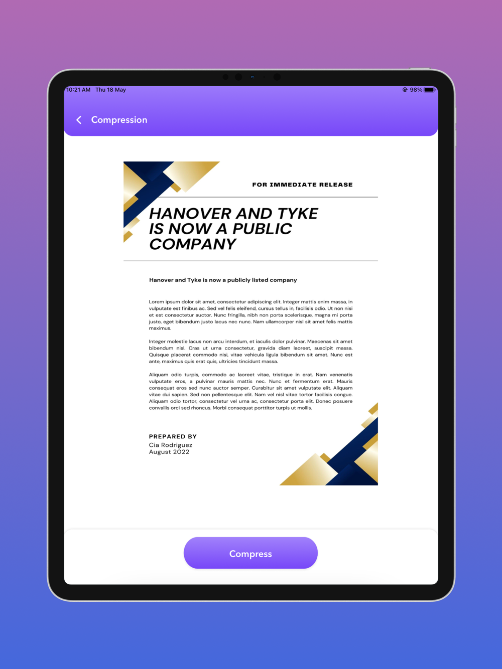 Compression: Reduce the file size of your documents without compromising quality, making it easier to store and transfer your files with others.