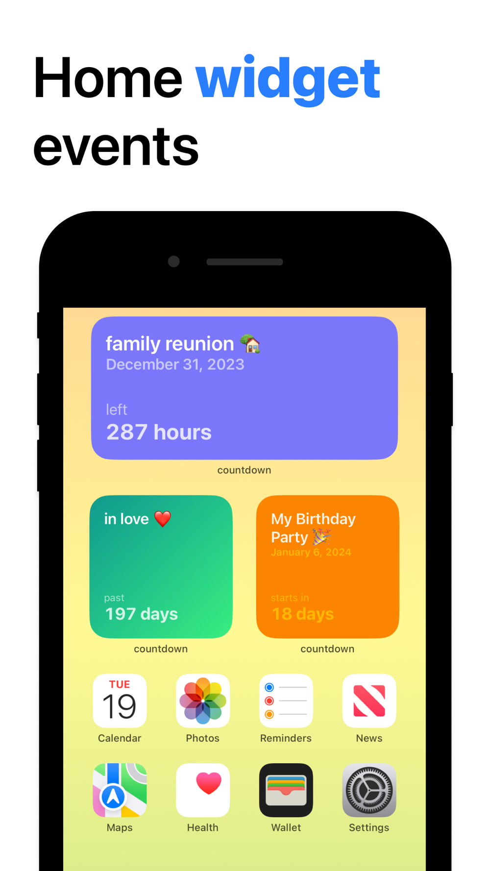 Countdown presents a user-friendly countdown timer for significant life events. Easily track the time until your upcoming Vacation, Birthday, Holiday, Party, Thanksgiving, Christmas, Halloween, and more, all with a touch of style!