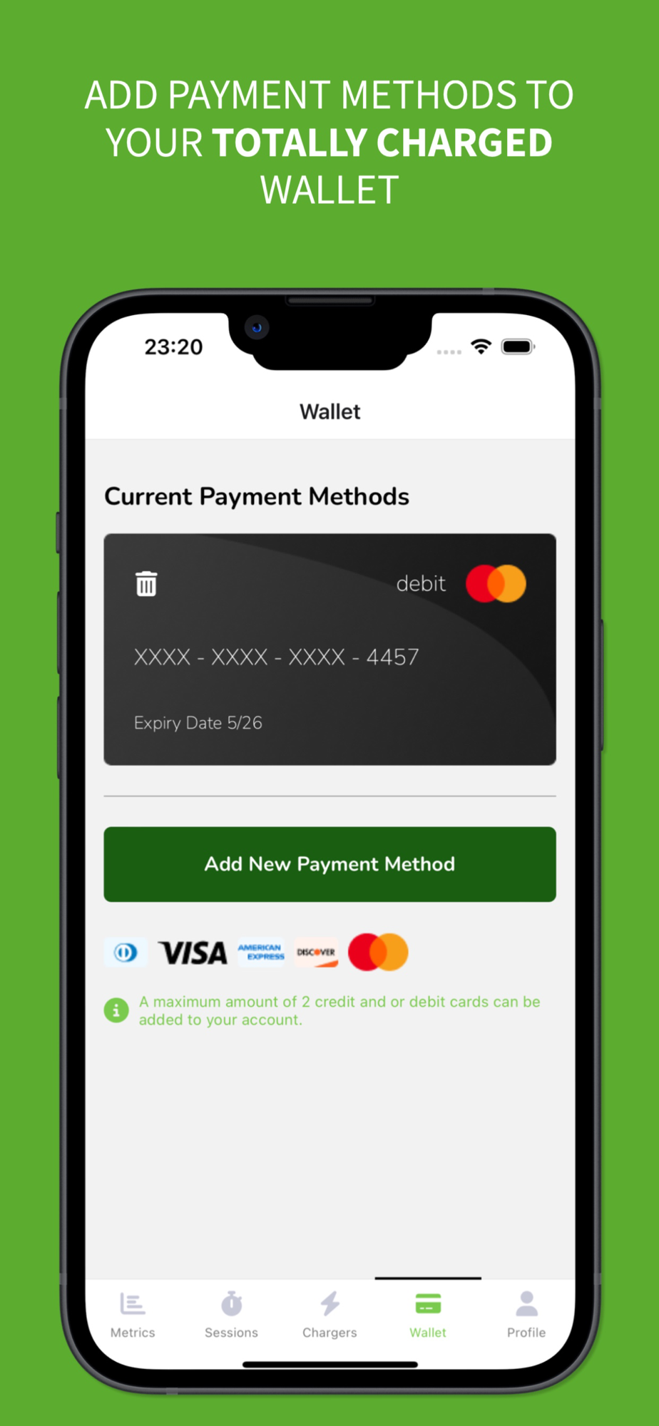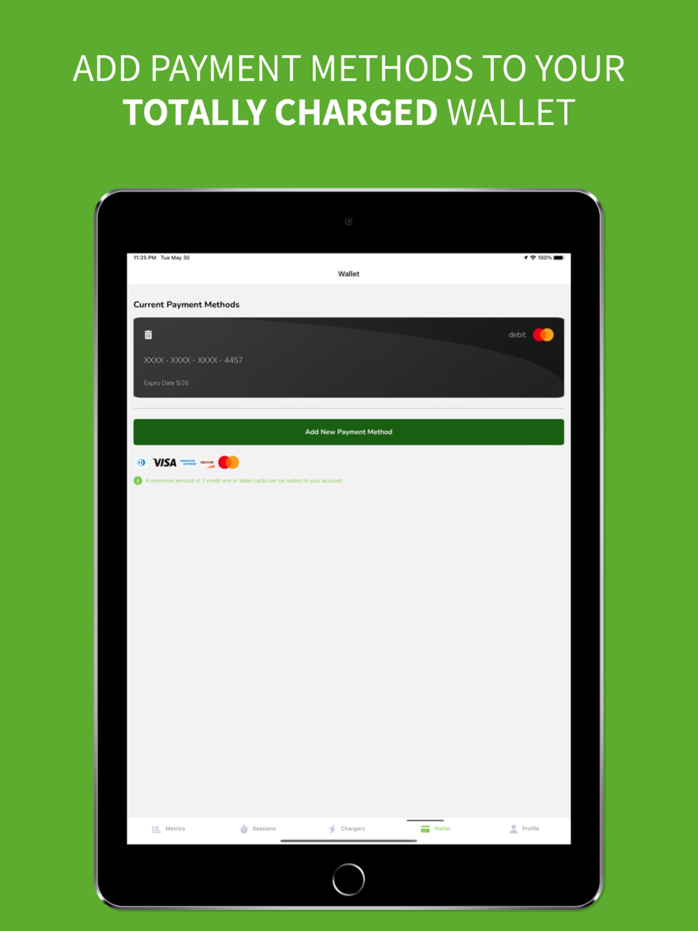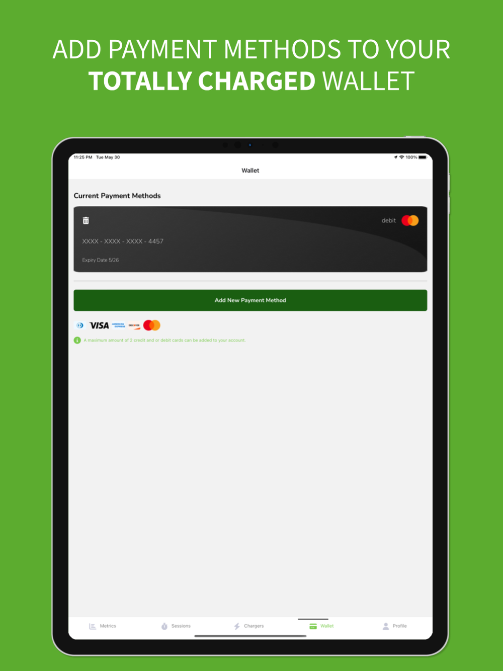 By adding a credit or debit card to your account, you can manage your charging budget and track information such as: