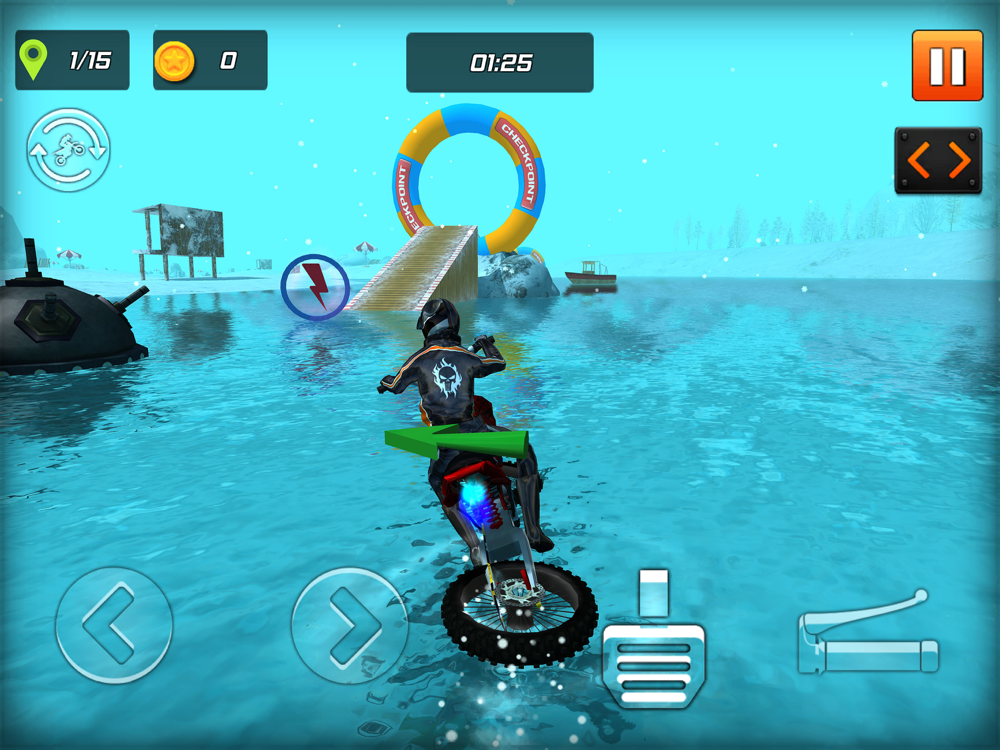 Showcase your stunts on water racing tracks , Be a Water Floating Stunt Bike Racer or a Surfer Bike Racer. Surfer Bike Racing Game is a 3D game where you will be riding your Bike on ramp and on Water. Surfer Bike Racing is a game is not only thrilling but Nerve testing