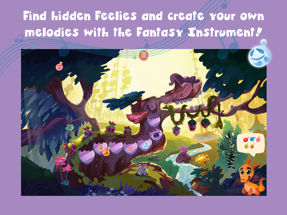 Feel & Play is a musical application for practicing emotional skills, created together with the Finnish Board of Education and dozens of kindergartens, primary schools and music therapists. Identifying and expressing all emotions is allowed for every child. Emotions are not classified as good or bad, positive or negative, permitted or forbidden. Creativity is stimulated through storytelling, music and playful sections, through which children can listen for themselves, to paint the emotions that the music evokes, or play the fantasy instruments. Creativity is the key for the child's senses to learn, become inspired, get stronger and also relax. The gamified sections are easy to use and child-friendly. The app is aimed at 2-8-year-olds, but it is easily suitable also for younger or for older children. Adults are allowed to play too!