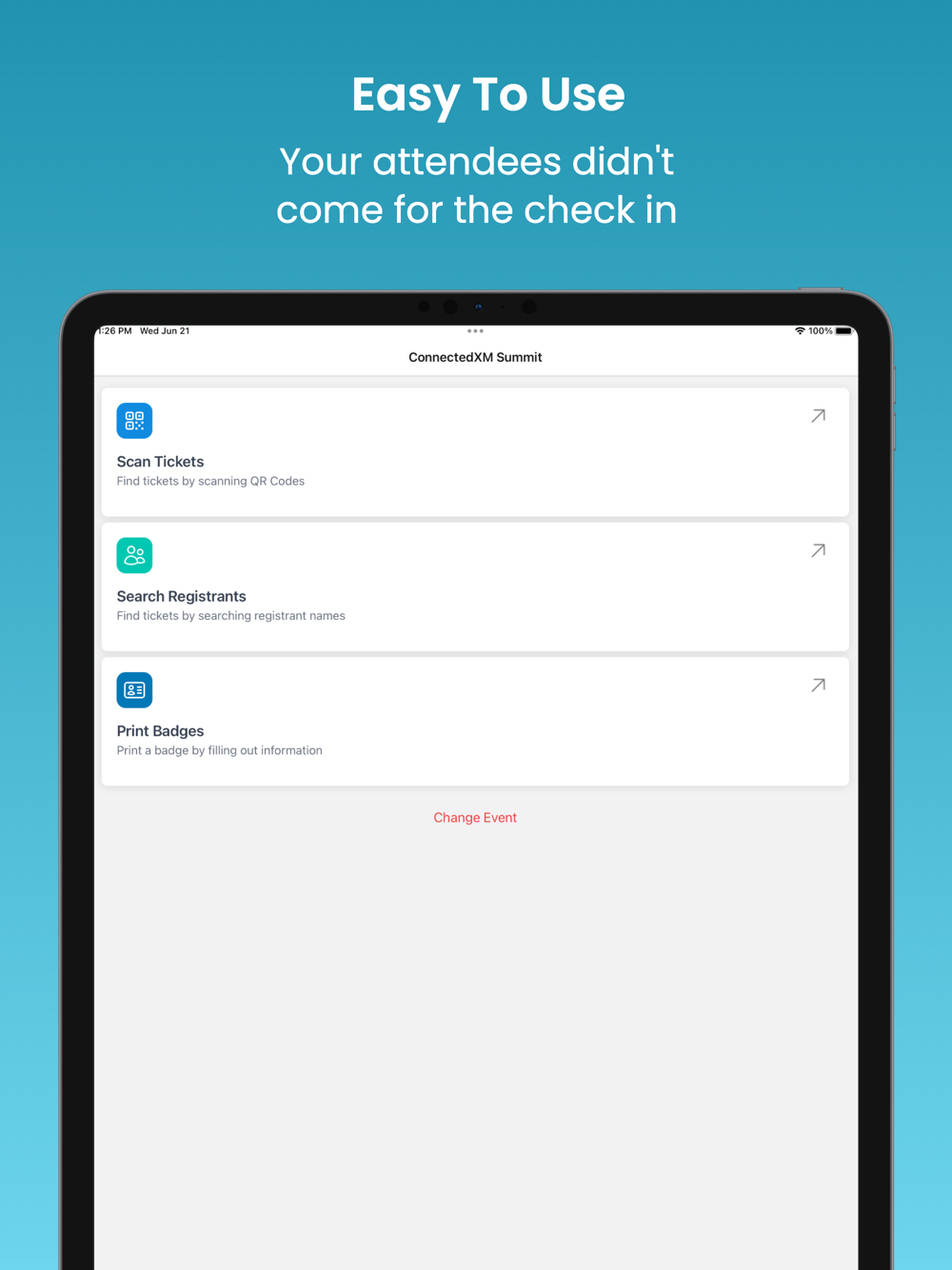 Easily integrate with your existing EventXM setup. In just a few steps, you're ready to roll out the quickest, most efficient check-in process your events have ever seen.