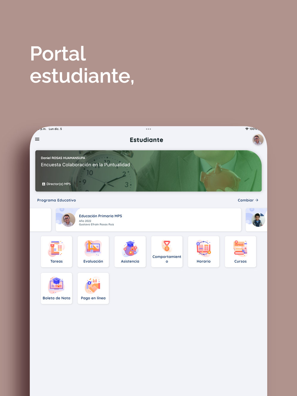 - Entérate en tiempo real de las buenas acciones de tu hijo (méritos), así como algunas conductas no favorables (deméritos) para felicitar o corregir.