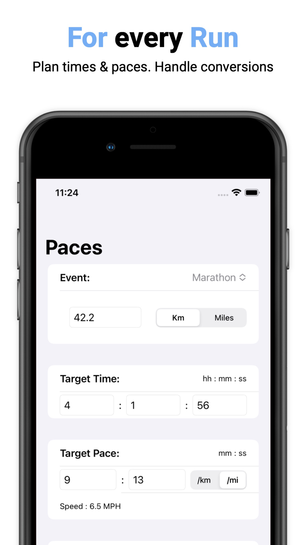 Easily and accurately convert between distance, time, pace and speed as well as the units. Super handy of you know your pacing outdoors in min/k but step onto a treadmill that only works in MPH. No more guessing.