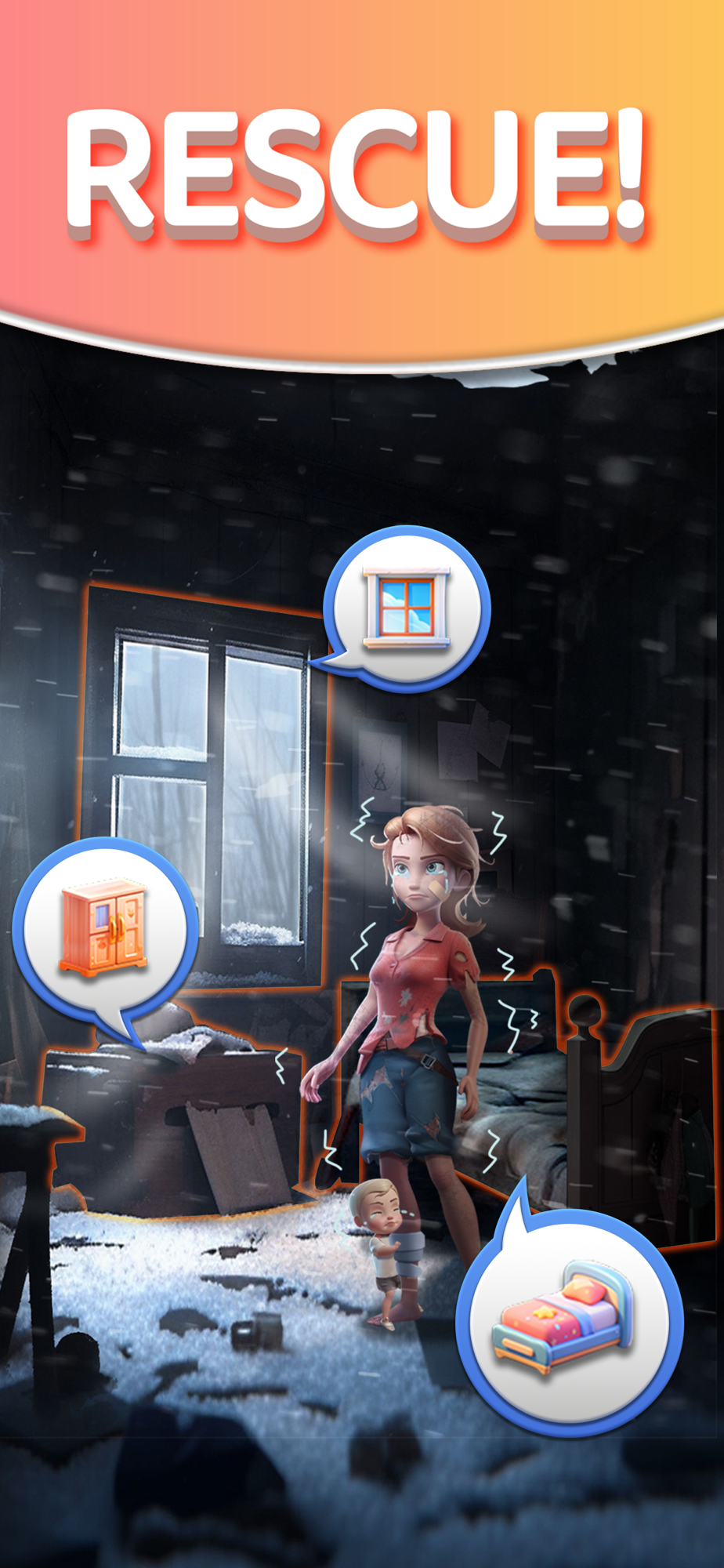 * Keep sorting and matching objects until you cleal all tiles from the customers!