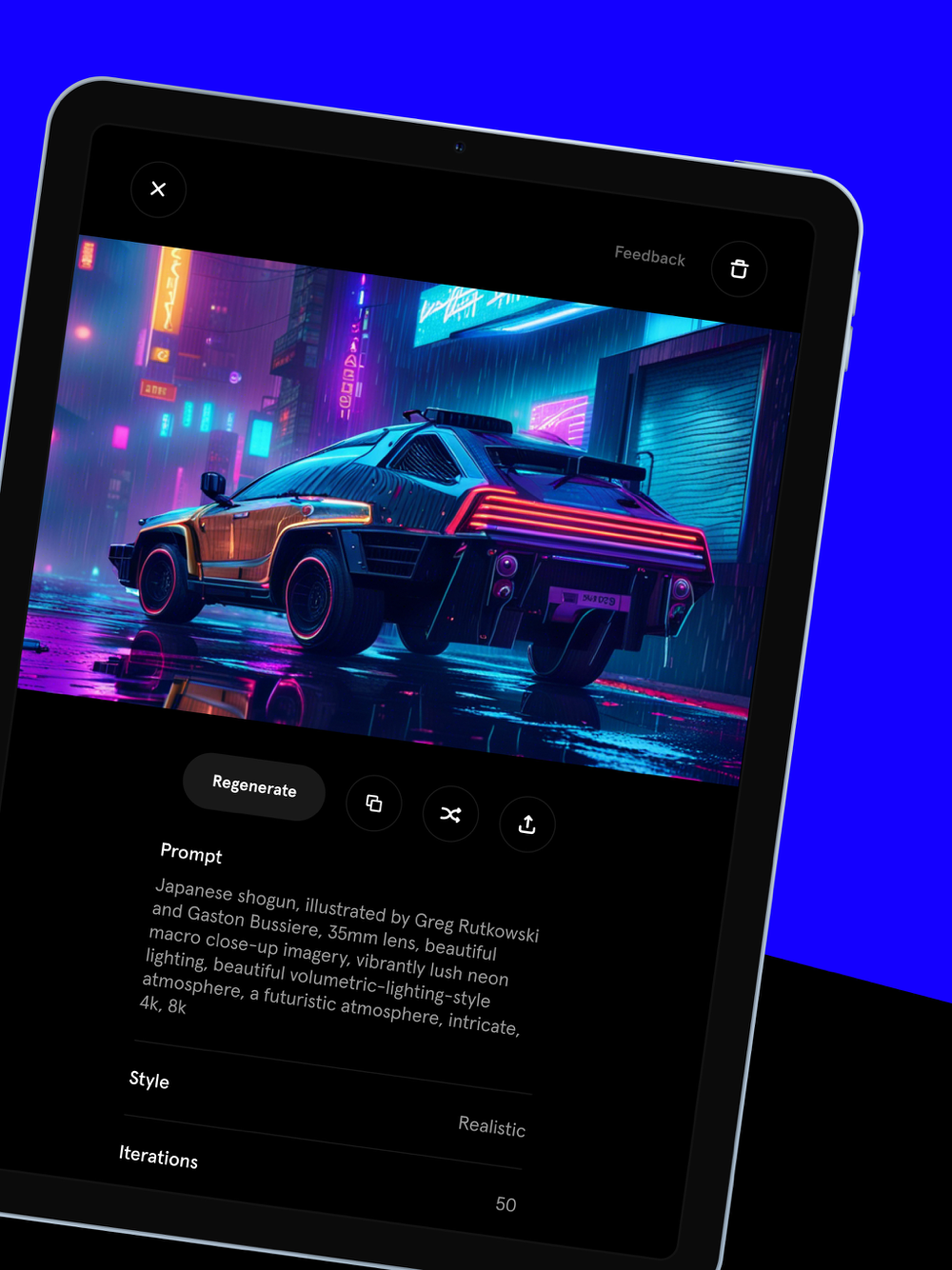 Arte goes beyond text prompts and allows you to use images as a visual foundation for your creations. Simply upload your own photo or select one from Arte’s vast library, and watch as the AI transforms it into a stunning masterpiece that aligns with your unique vision. Explore different angles and perspectives, breathing new life into your photographs and unleashing their artistic potential like never before.