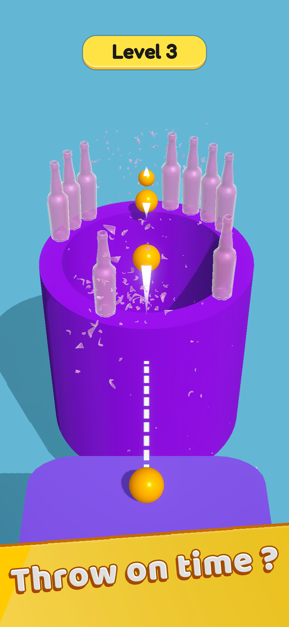 Throw On Time! is an addictive tap timing challenge game that will test your timing and reflexes! Your goal is simple: get the bottles in their designated places by tapping immediately.