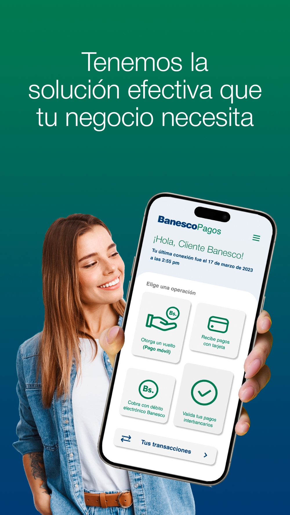 BanescoPagos es la app que integra y centraliza diversos servicios de cobros y pagos electrónicos en pro de facilitar la operativa diaria de tu negocio. Con esta aplicación podrás darle acceso a tus empleados para: