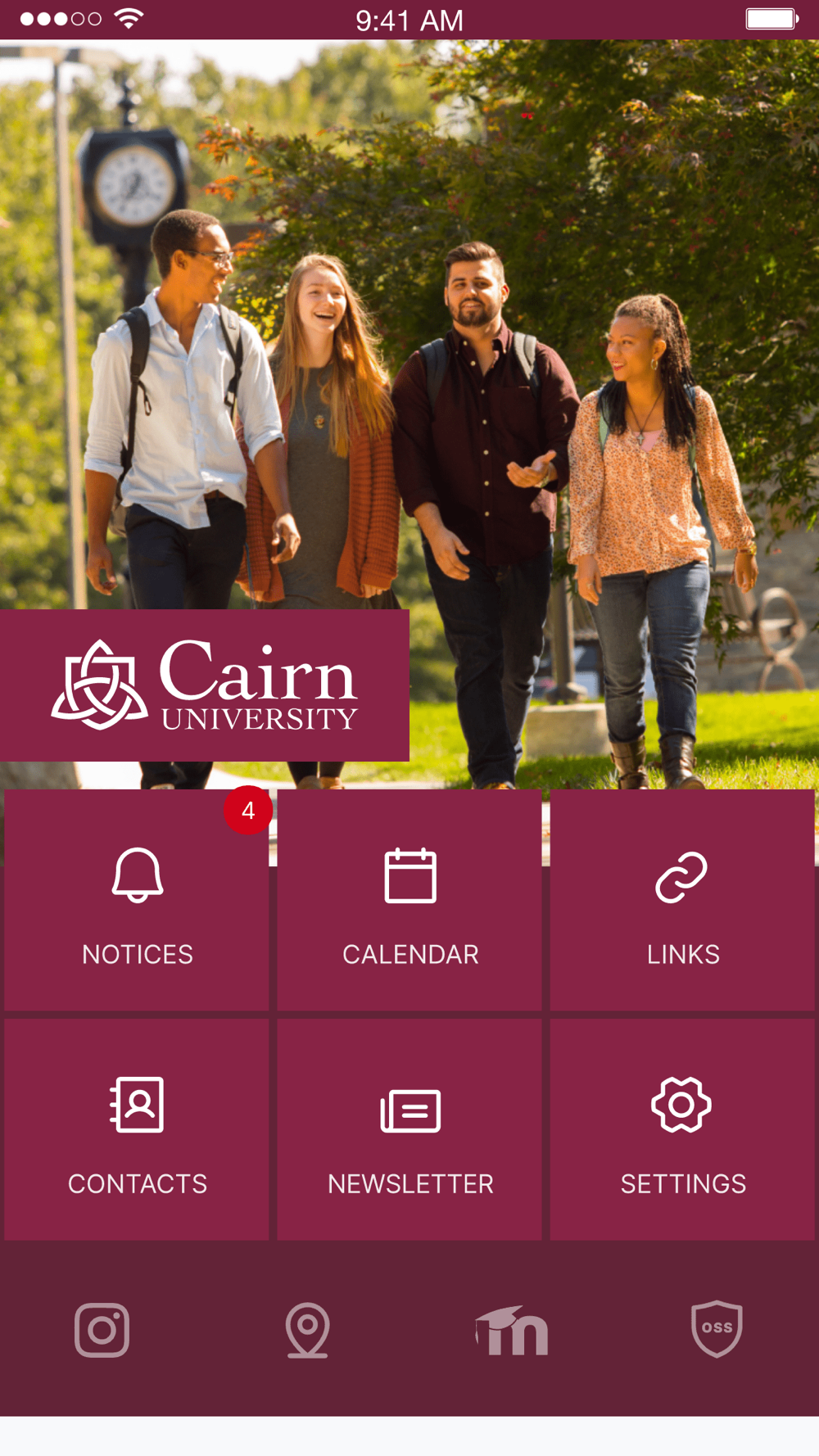 Other features such as a quick and easy Contact Directory help you to reach Cairn University with the tap of a button