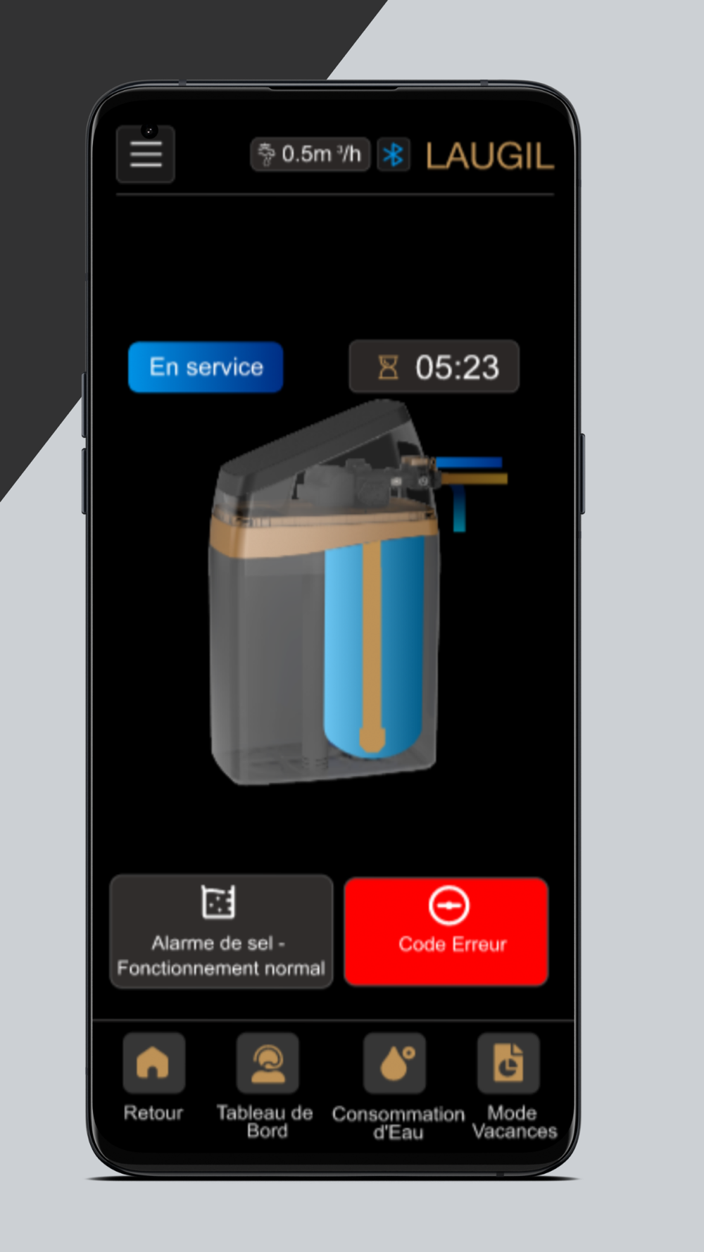 Introducing the Laugil App, the perfect companion app for your Laugil water softener! Our app turns your smartphone into a remote control and display for your Laugil water softening system, allowing you to monitor and manage your softener from anywhere at any time. Say goodbye to the hassle of checking your unit physically – with this Laugil App, you'll receive real-time warnings and alarms straight from your device.