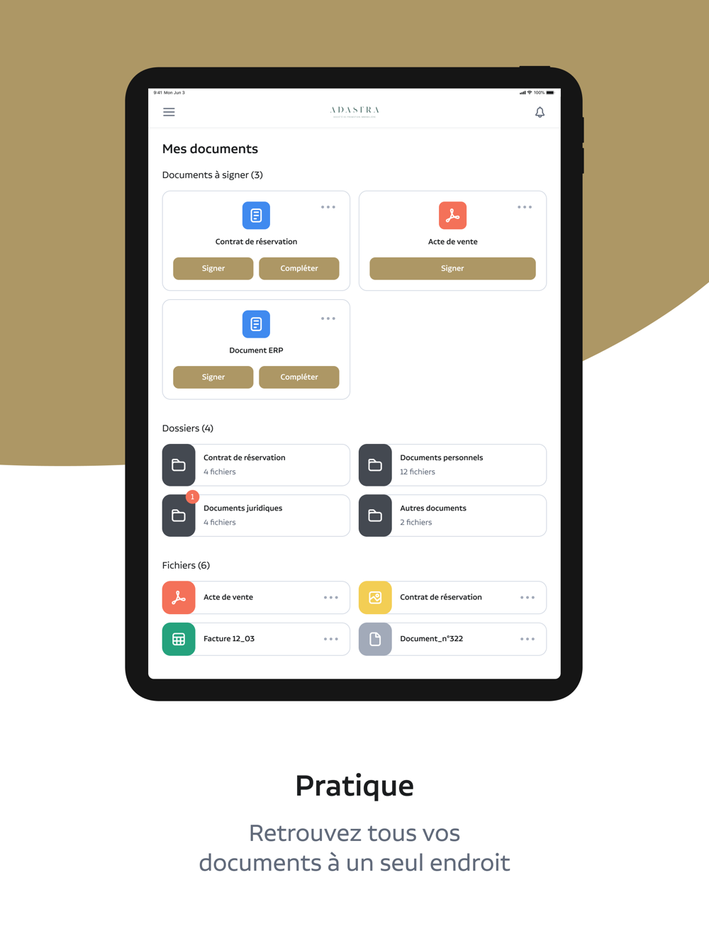 Vous pouvez retrouver sur cet espace client une multitude d’informations et fournir des documents (ex : offre de prêt), signer électroniquement des contrats, récupérer des fichiers (attestation de vente), et plus encore !