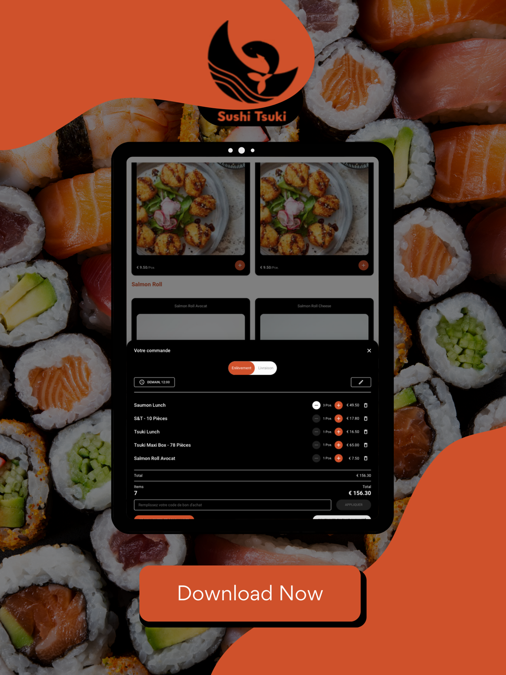 Où que vous soyez, avec l'application Sushi Tsuki, vous pouvez commander sans souci parmi la vaste gamme.