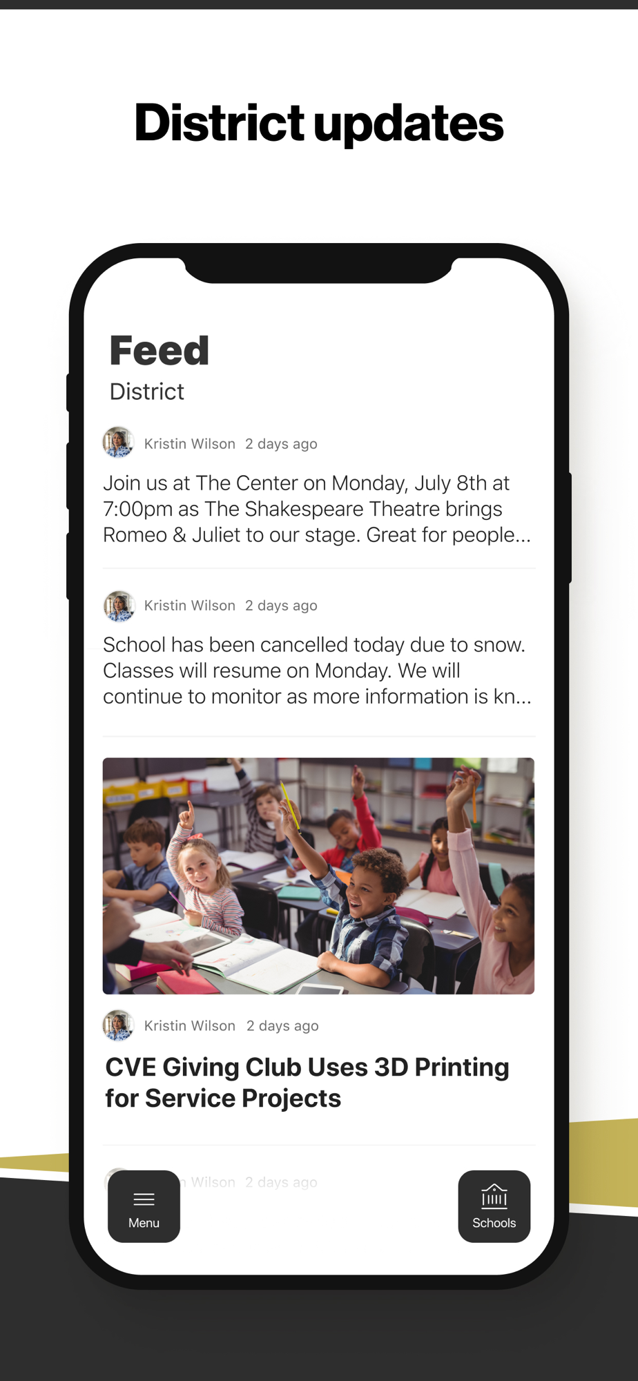 In the Live Feed is where you’ll find updates from the administration about what’s going on in the district right now. Whether that’s celebrating a student’s success, or reminding you about an upcoming deadline.
