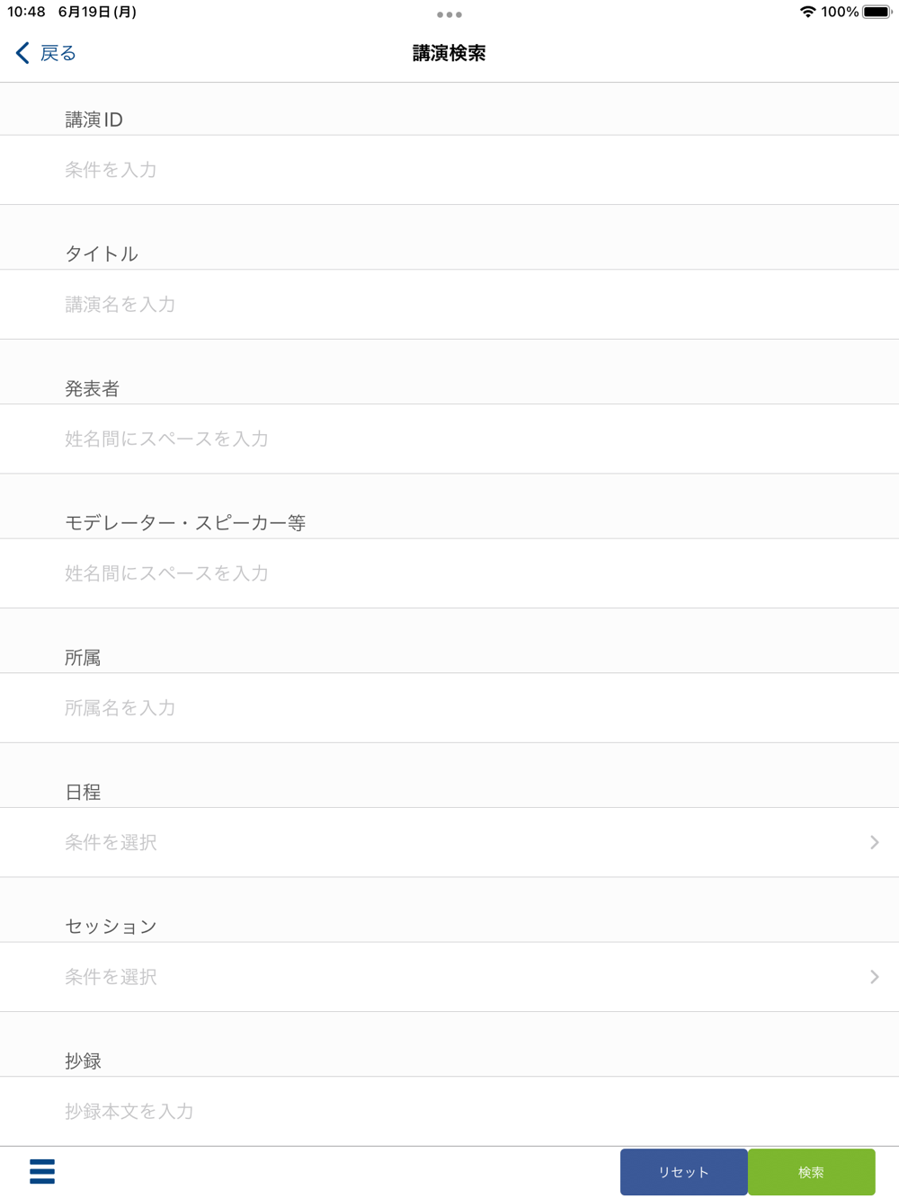 セッションや講演を検索・スケジュール登録して自分の大会スケジュールを作成したり、講演ごとにメモを残すことができます。