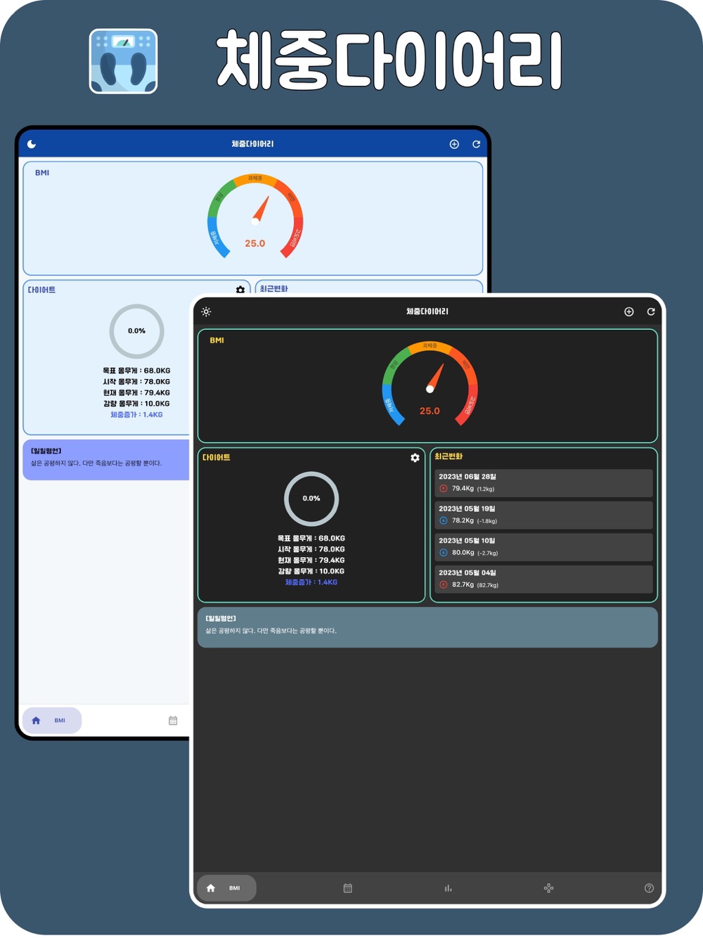 체중 다이어리는 체중을 기록, 관리하는 앱(app)입니다.