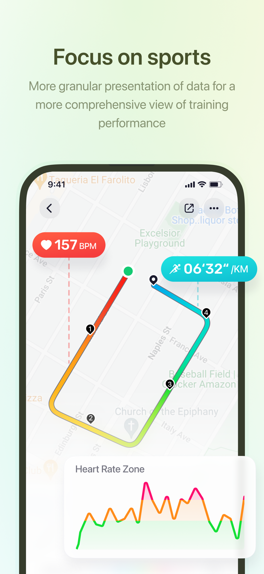 Diverse exercise types: Covers over 100 exercise modes such as running, cycling, and swimming, accurately capturing every performance of your exercise.