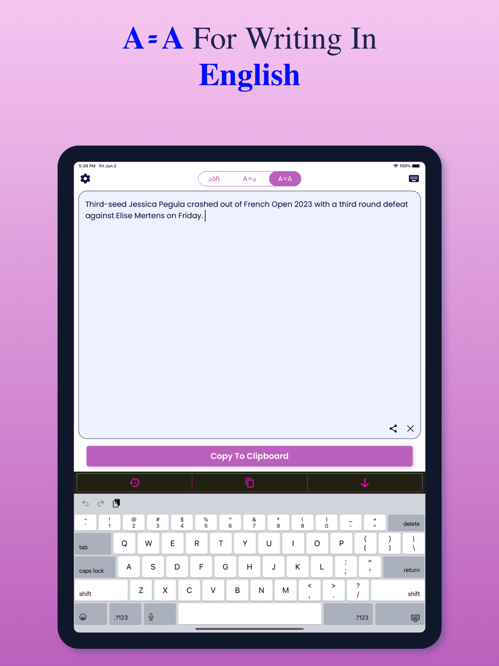 2rd A = Georgian latter : You can write Georgian with English keyboard and pronounce will be as Georgian.