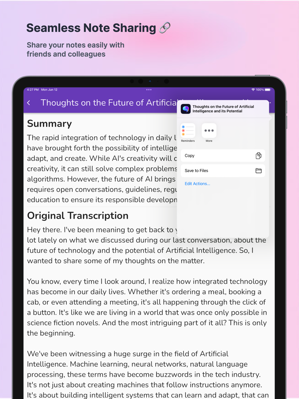 Secure and Sync Across Devices: Your data is securely stored and synchronised across multiple devices, ensuring seamless access to your transcriptions and summaries wherever you go.