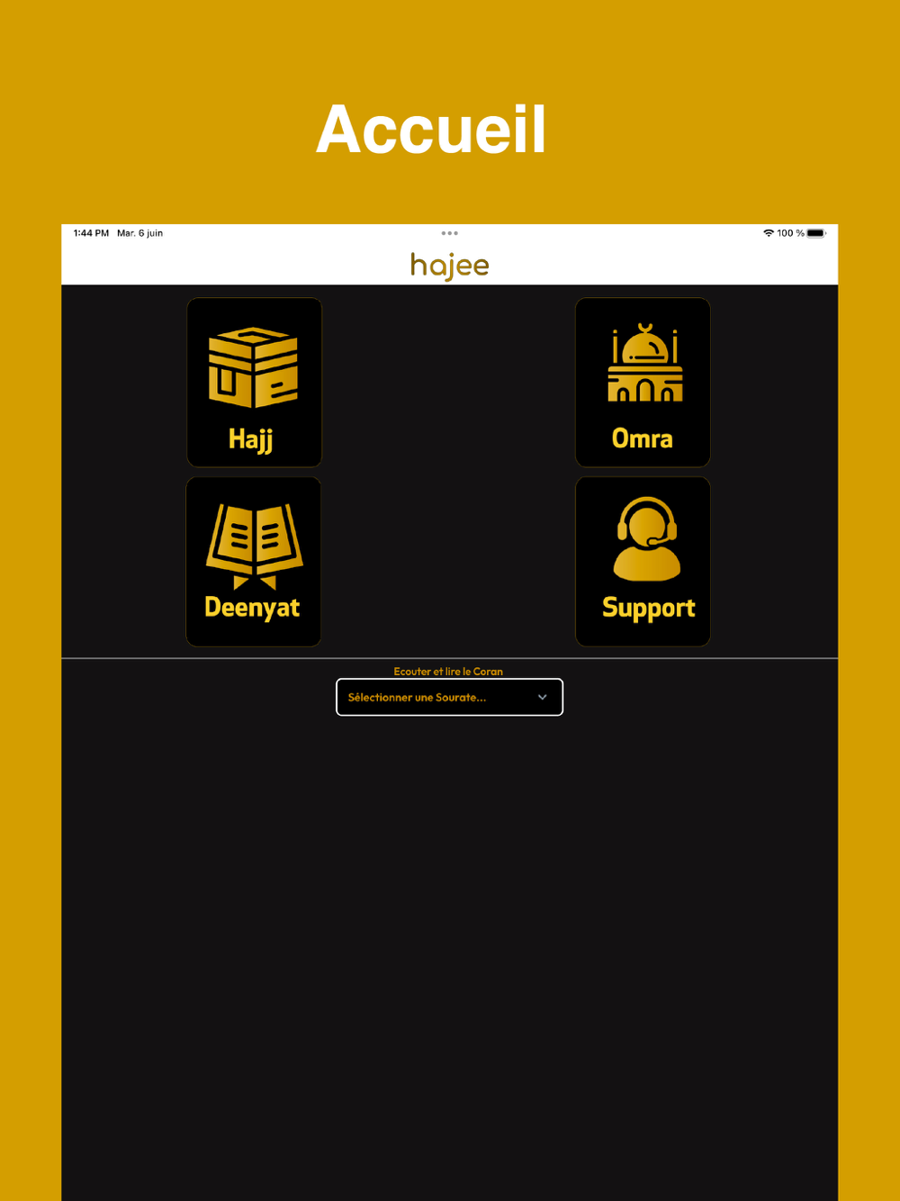 Notre application mobile est dotée de fonctionnalités qui facilitent votre parcours et vous aide à comprendre les prières et les rituels qui sont obligatoires et recommandés.
