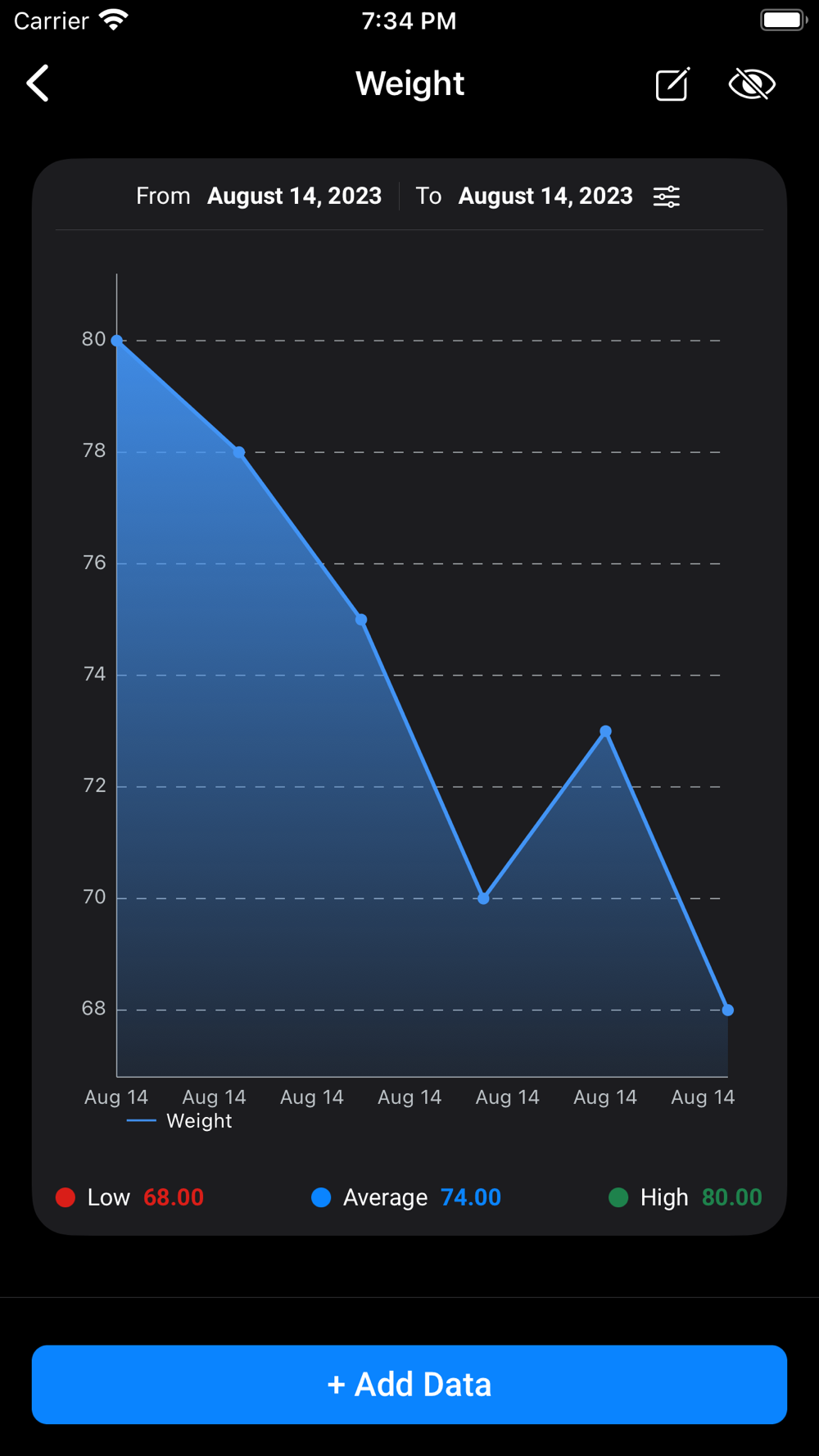 Beyond workouts, track anything you desire – from weight and calories to daily activities. Visualize your data through detailed charts that showcase your achievements and trends over time.
