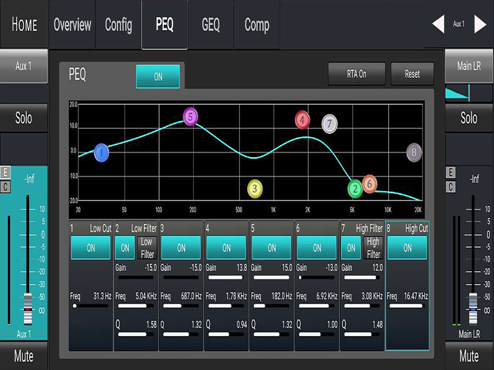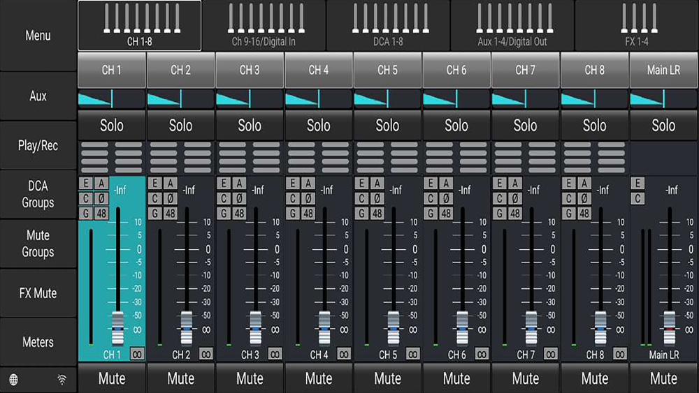 •Scene storage is one of the most practical and significant features that differentiate it from analog mixers. Up to 255 complete scenes can be stored and exported to external storage devices for backup and later recall.