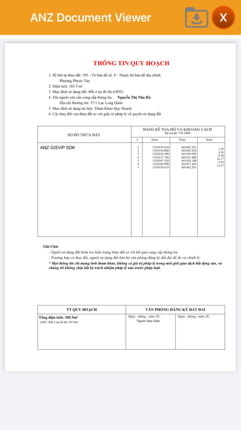 8. Ghi tệp *.pdf đối với thông tin thửa đất, từ kết quả đọc bản đồ trực tuyến