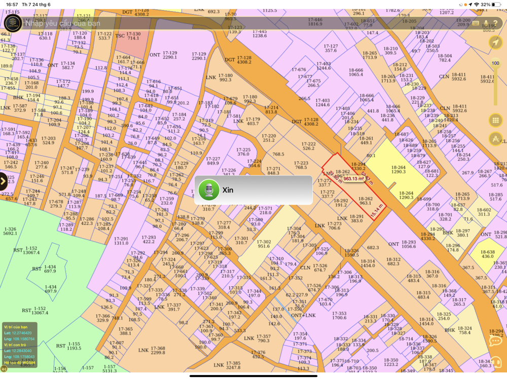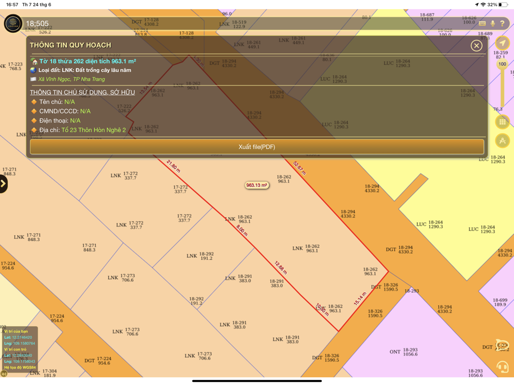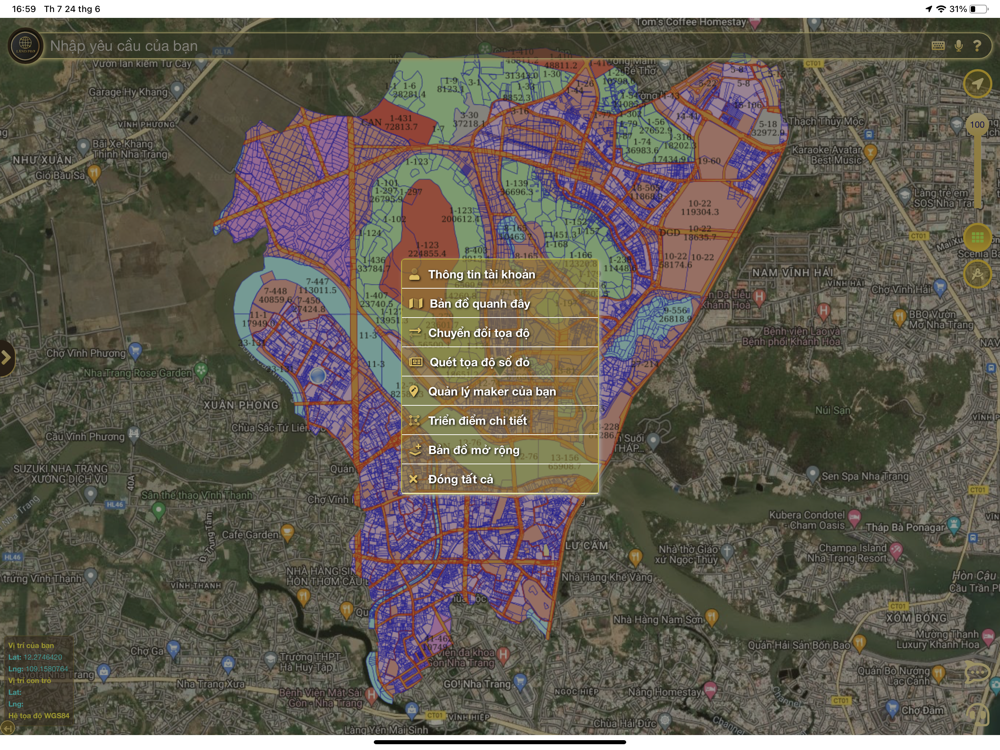 1. Định vị vị trí thửa đất hiện tại của người dùng có vào diện quy hoạch hay không.