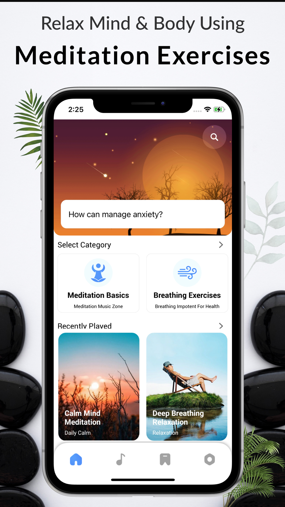 Reward your senses using music, yoga and enjoy soothe textures that will reduce stress, anxiety relief and help you sleep better. anywhere Calm (clear) your mind with animated breathing exercises, and lower your stress, find energy, and increase your focus with quick Relax, Energize, affirmations and Concentrate meditations—and many more.