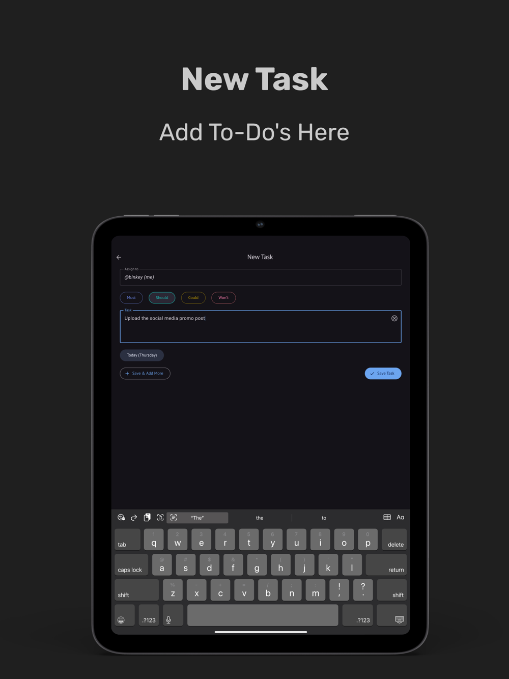 Prioritize your tasks effectively with our unique categorization. Break your tasks into Must, Should, Could, and Won’t, allowing for a streamlined approach to productivity and ensuring that your focus remains on what truly matters.