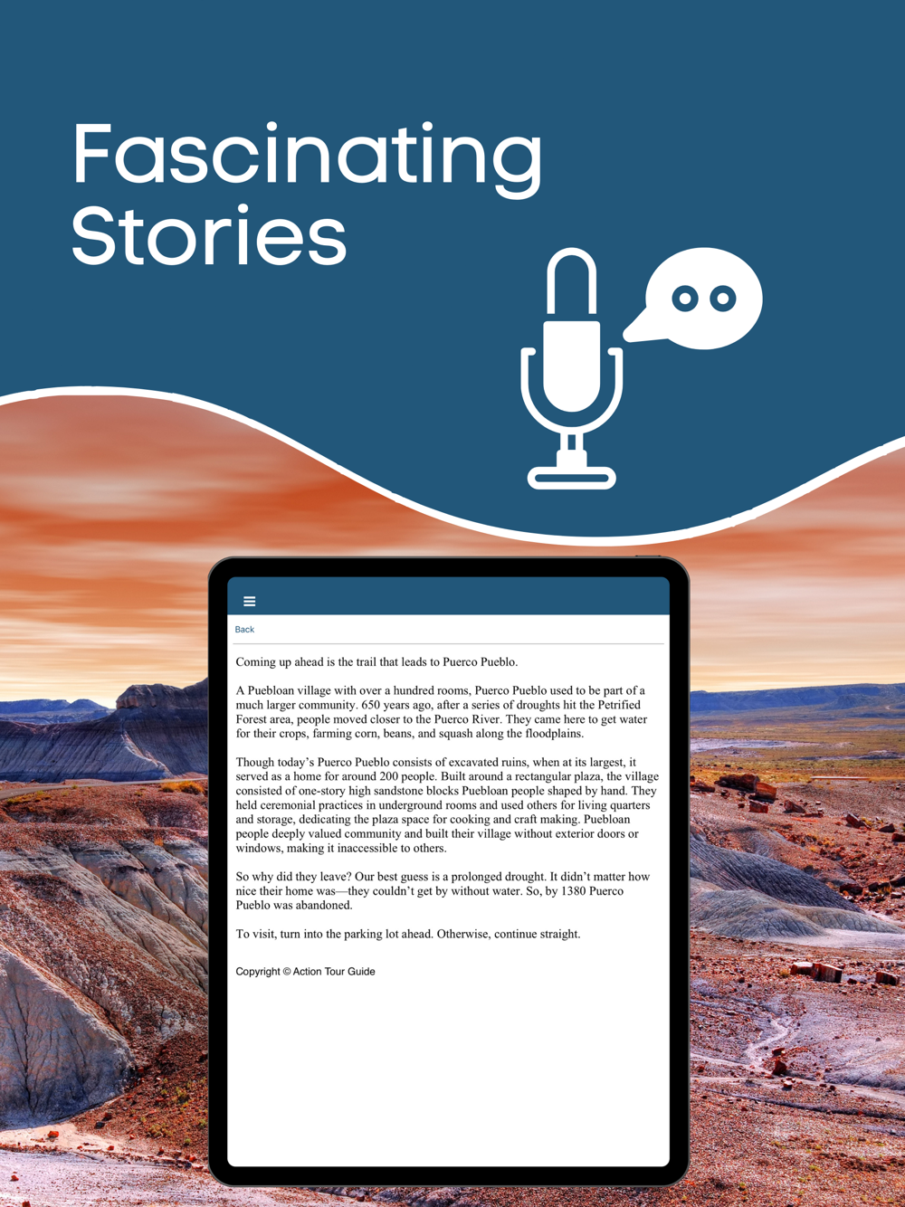 Featuring riveting stories, an engaging narrator, and easy automatic audio, this app puts exploration in the palm of your hand!