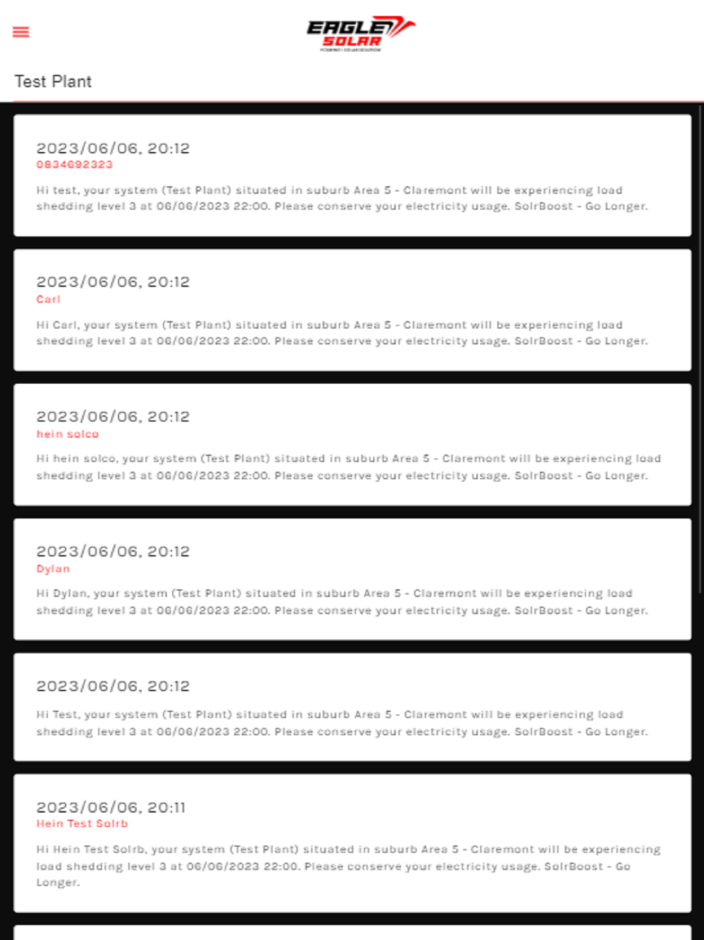 Mobile Application for Eagle Solar customers. Customers can register for push notifications, see their loadshedding schedules as well as historical messages sent to them.