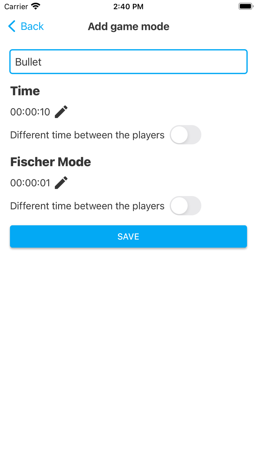 You can add your own time modes. The Chess Clock can handle different times per player.