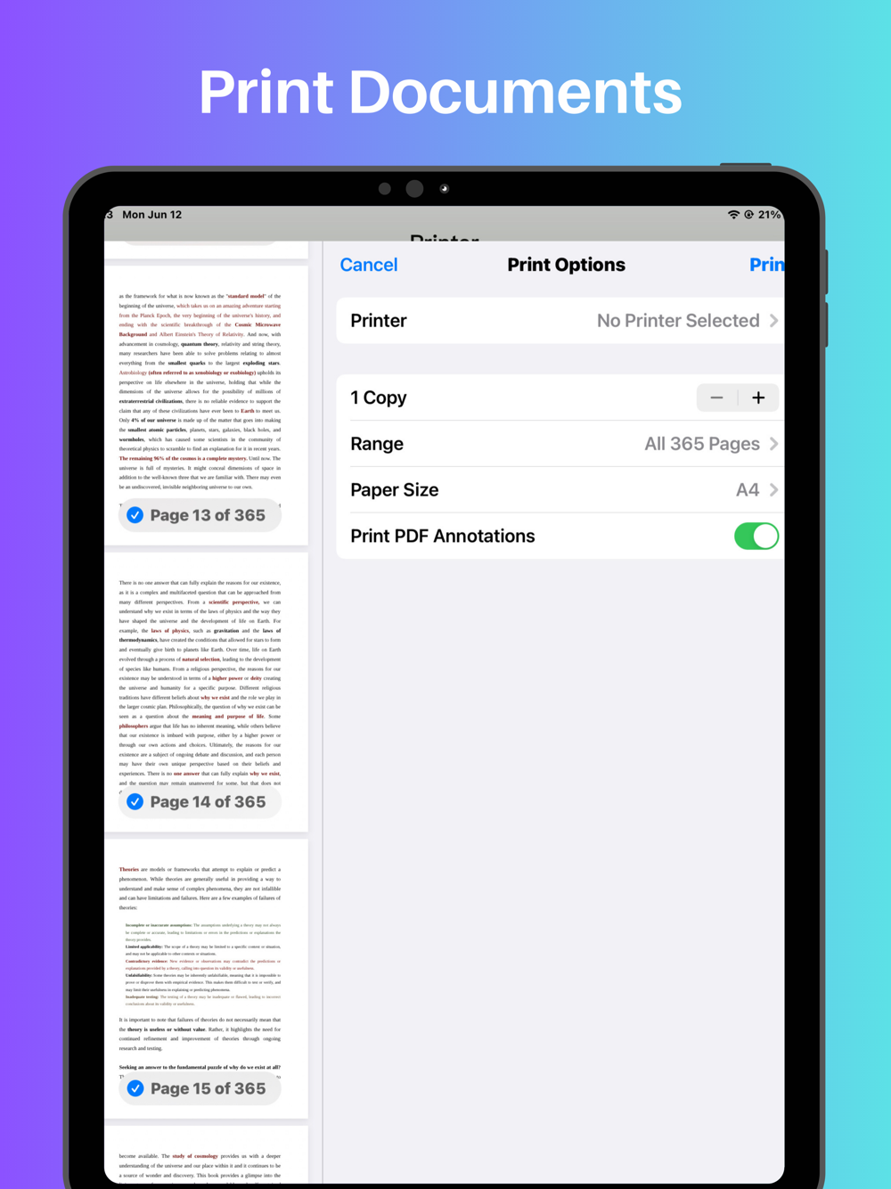 Printer App has a built-in scanner that uses your iPhone or iPad camera to scan documents.