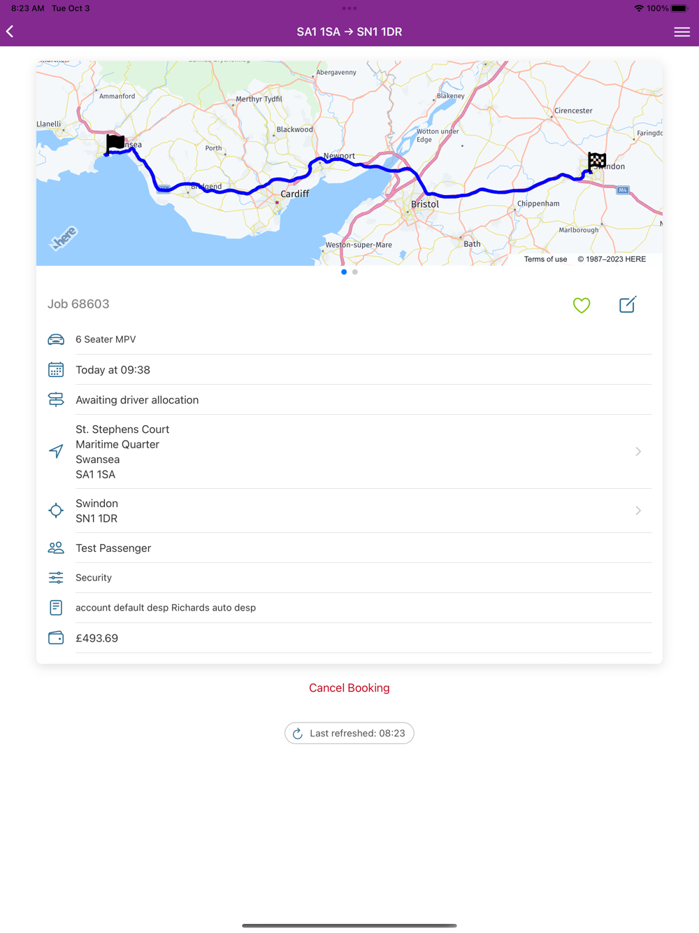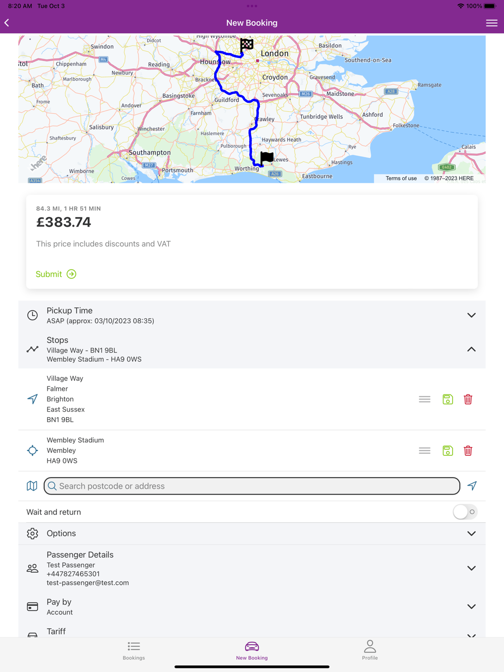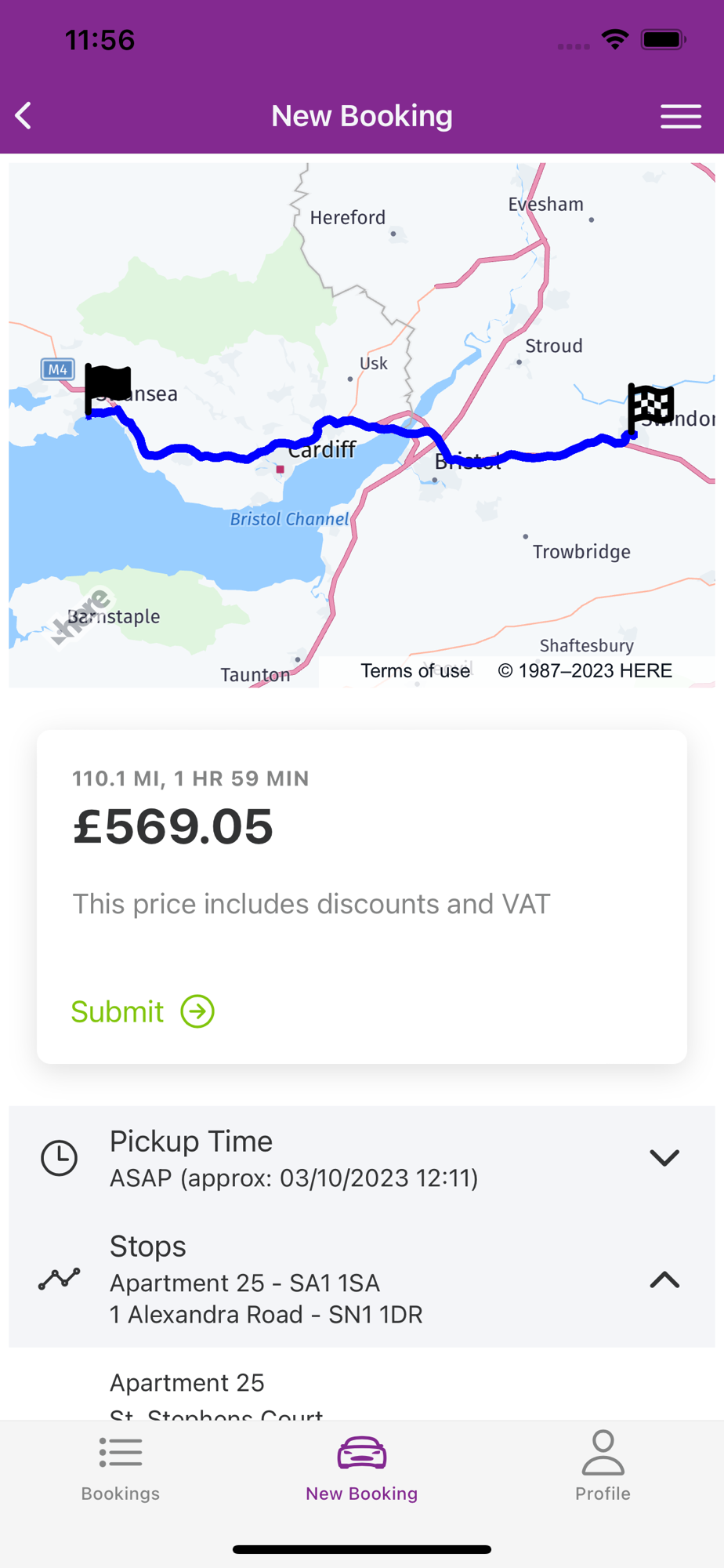 The app provides full visibility of all booking information, returning live status updates and the ability to track the vehicle you are waiting for/travelling in.