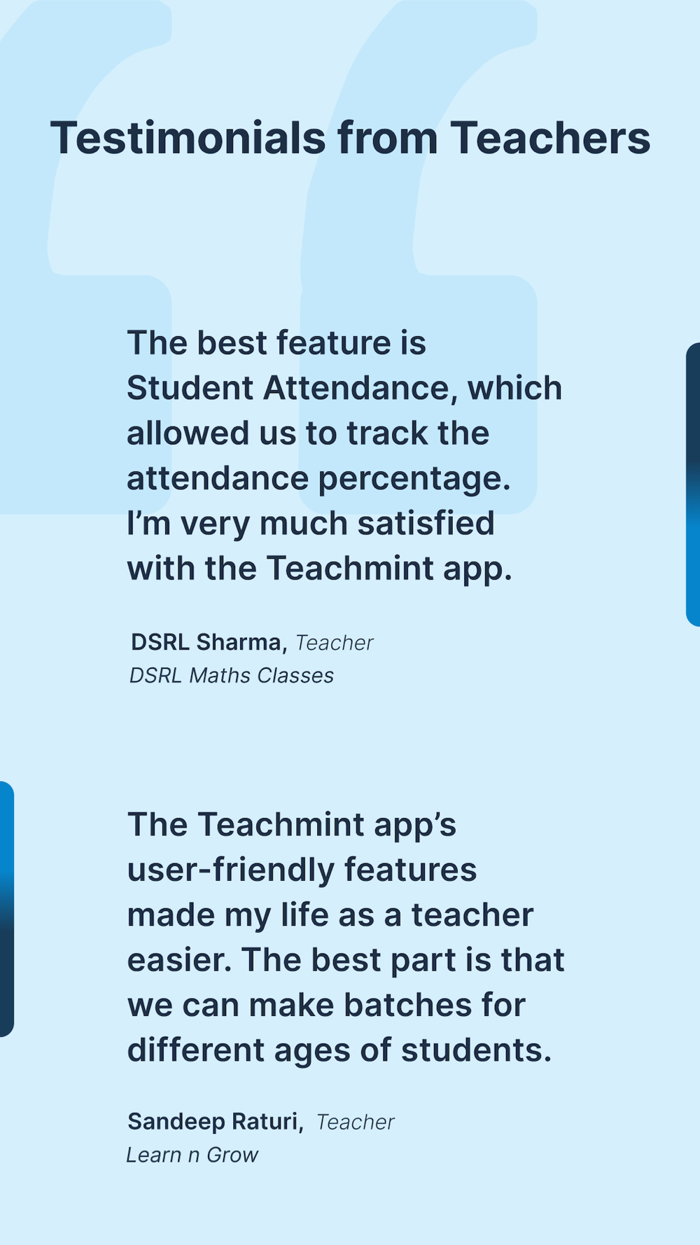 The Teachmint tuition app is a comprehensive solution for independent tuition and coaching teachers to digitize and manage their classrooms, with dedicated features for teachers and students