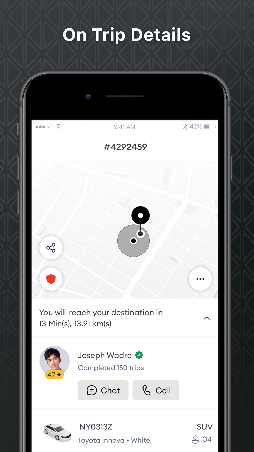 3. See your driver’s arrival in real-time on the map, along with their picture, vehicle and contact details.