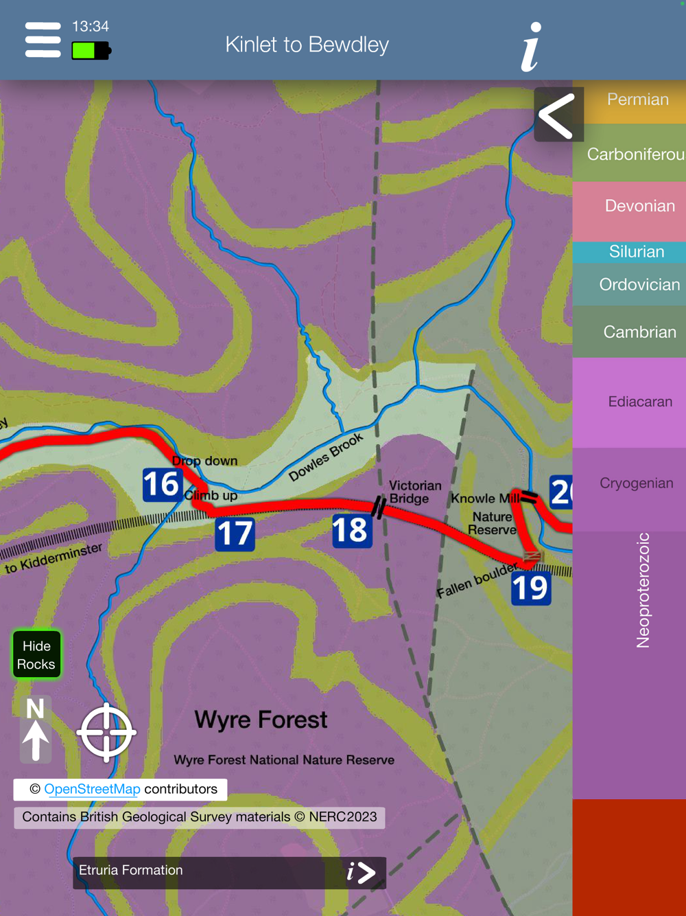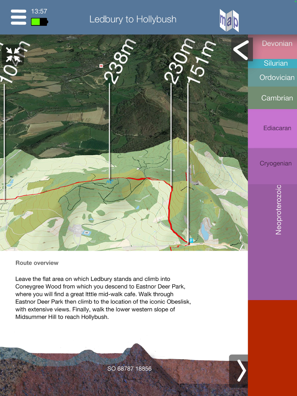 Each walk has a detailed interactive geology map, with details of the rocks below you, their age and what the environment, fauna and flora was like when they formed.