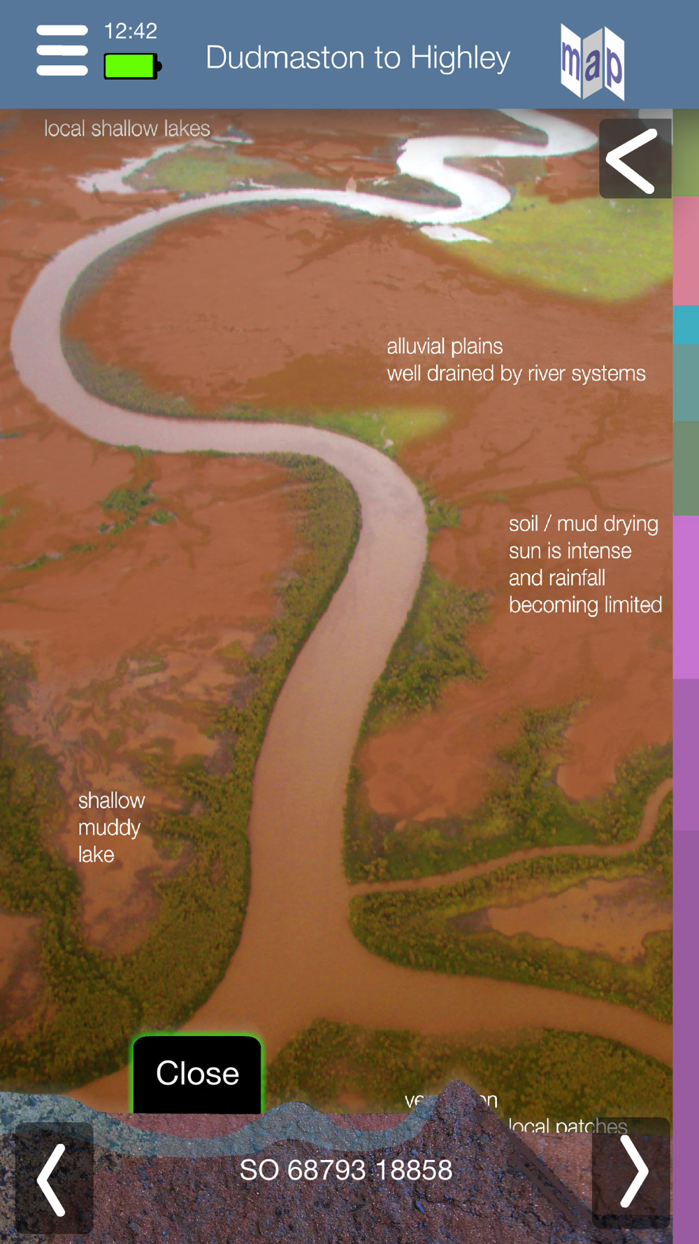 Each walk has a detailed map - down to individual stiles, gates, etc, plus places of interest and facilities along the way. Your current location is always shown, plus your current OS grid ref, latitude, longitude and altitude.